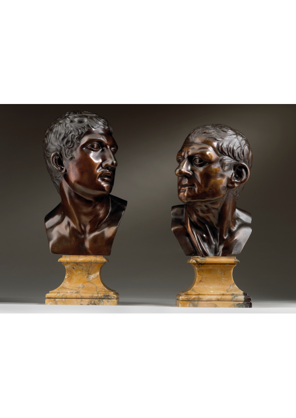 The present busts depict two bronze reductions after ancient marble statues. Sculptural reductions and adaptations such as the present bronze typify the fascination with the ancient world that preoccupied artists and their patrons throughout Europe during the late seventeenth and eighteenth centuries. Bronze replicas such as the present work were in high demand amongst Grand Tourists. Indeed, the interest in antiquity extended beyond antiquarian circles, into the cultured, educated elite, who amassed great collections of antiquities in their villas and houses, ones that acted as important markers of their social identity.