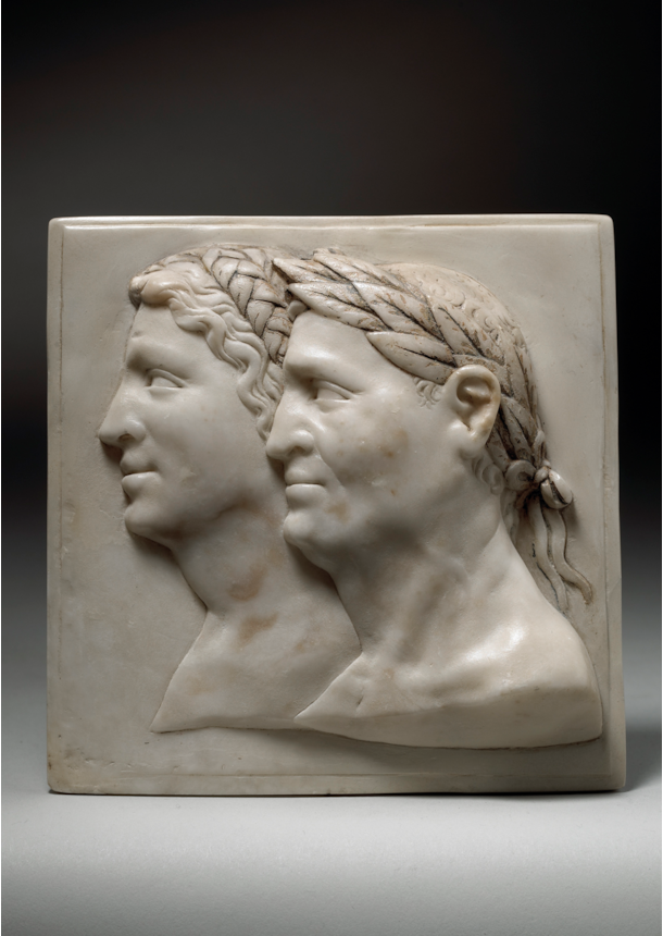 15. Carved High Relief depicting Two Profile Heads of an Emperor and an Empress