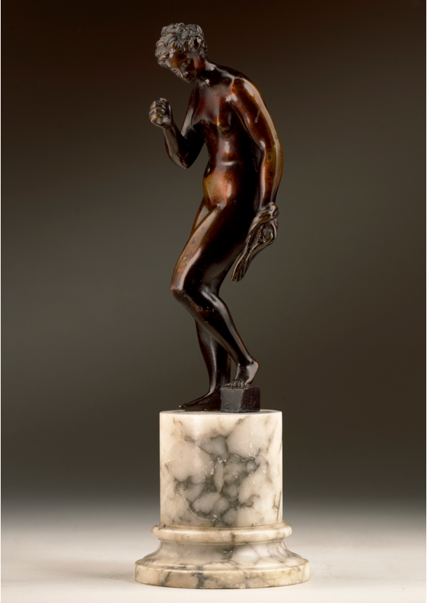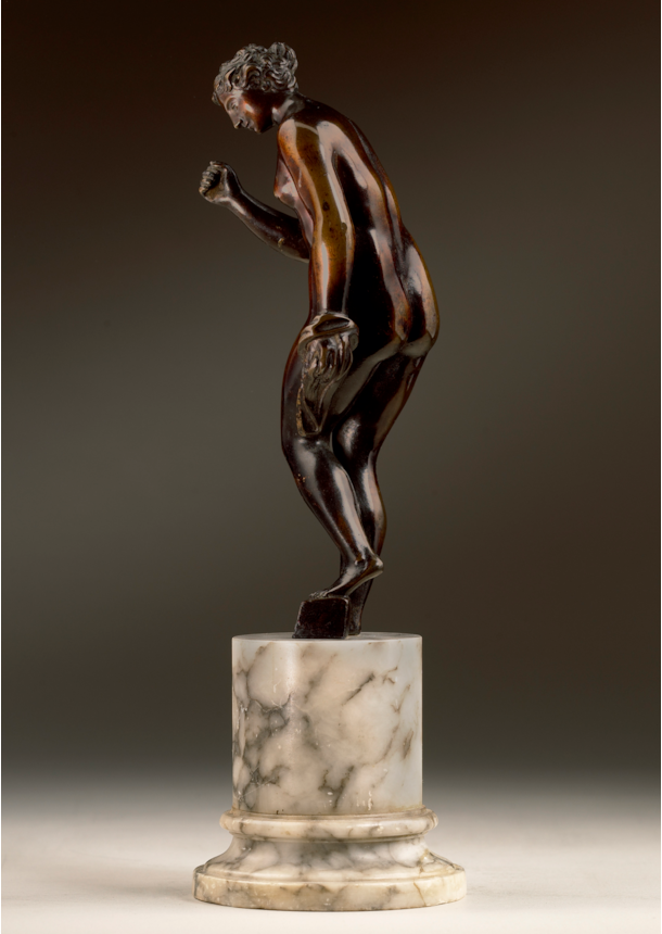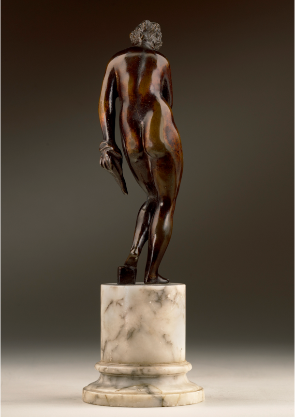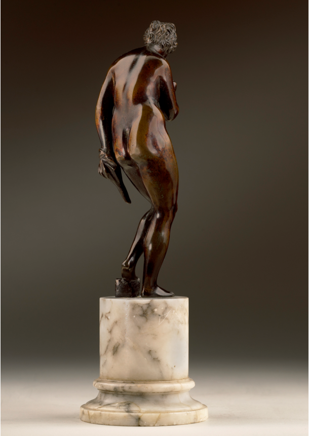 A closely comparable cast of the present model was sold at Sotheby’s New York on 17 October 2000 as lot 33, with an attribution to Roccatagliata, despite its differences from the Trent bronze. Even more notably than the New York bronze, the present cast of the variant model is distinct from the Trent bronze in style and facture, with a more delicate rendering of facial features and details, as well as a smooth surface finish that is uncharacteristic of Venetian bronzes around 1600. It is therefore likely that the present bronze was adapted from Roccatagliata’s model by a sculptor or workshop active in another Italian centre, or perhaps even in France, as may be indicated by the reddish translucent lacquer and details in the casting. As such, the bronze would form a valuable testament to the dissemination and adaptation of sculptural models across 17th-century Europe.