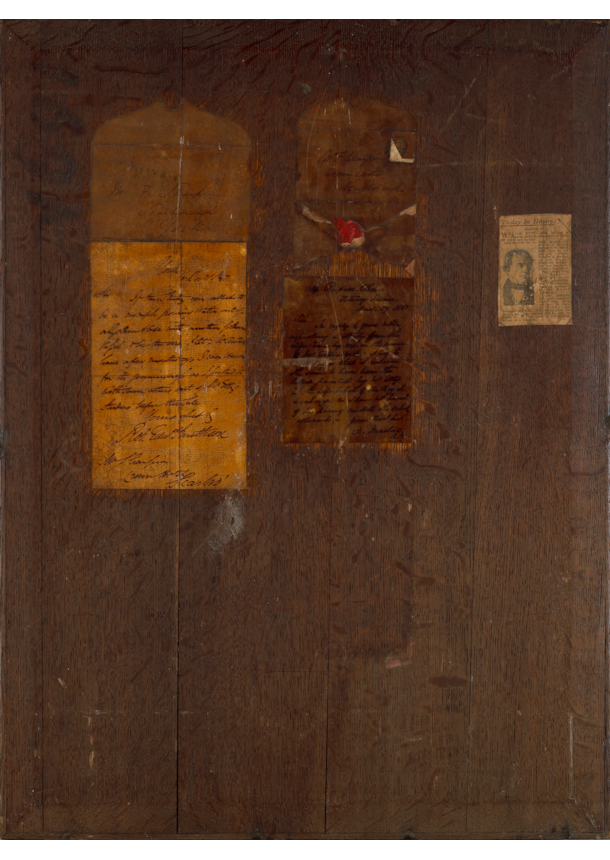 Inscribed: On three labels, verso with letters to J F Sharpin, including one from Daniel Maclise (1806-1870) R.A.