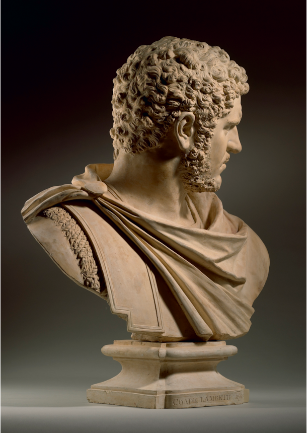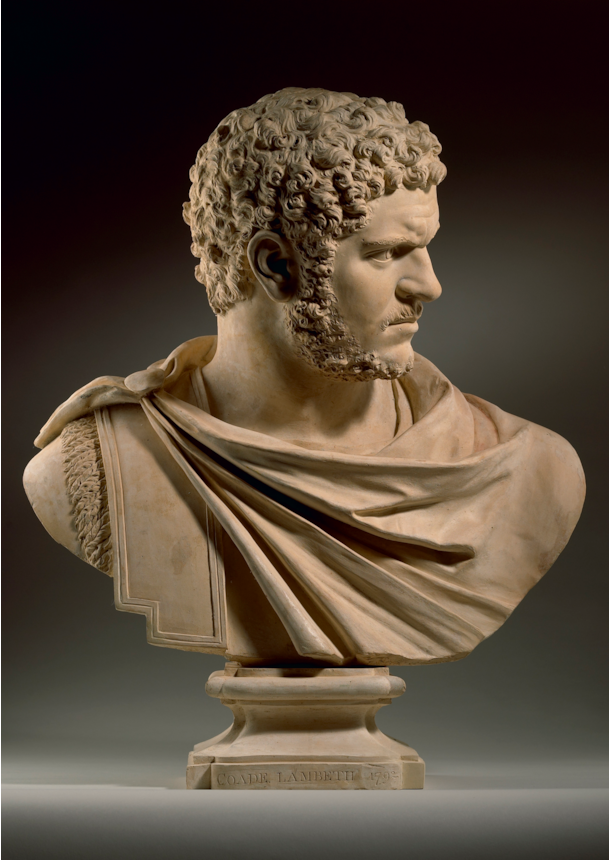 In the eighteenth-century marble copies of the bust of Caracalla were highly popular, mostly amongst English collectors who may have appreciated that Caracalla was proclaimed emperor in York. Examples by Laurent Delvaux, Claude Clair Francin, Francis Harwood, Bartolomeo Cavaceppi, and Joseph Claus, may be cited, but many are unsigned, such as the one in Chatsworth.