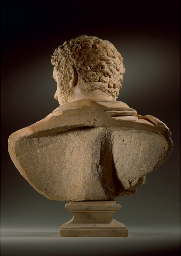 The ancient bust of ‘Caragallo con il petto’ was first documented in the inventory of the Palazzo Farnese in Rome in 1566, where it remained until the late 1780s, when it was transferred to Naples following its restoration, likely carried out in the workshop of Carlo Albacini. By 1796, it was recorded at Capodimonte, but by 1805, it had been relocated to the Museo degli Studi, later known as the Museo Borbonico and now the Museo Archeologico Nazionale, where it remains. Multiple versions of this type of bust were known by the early eighteenth century, with at least four documented in the Albani collection at the time of its acquisition for the Capitoline Museum. Though additional examples had emerged by 1800, none were comparable in quality to the exceptional bust in the Farnese collection. The bust was regarded as one of the final masterpieces of classical antiquity, often described as ‘the last effort of Roman sculpture or ‘le dernier soupir de la sculpture romaine’ (the last breath of Roman sculpture).