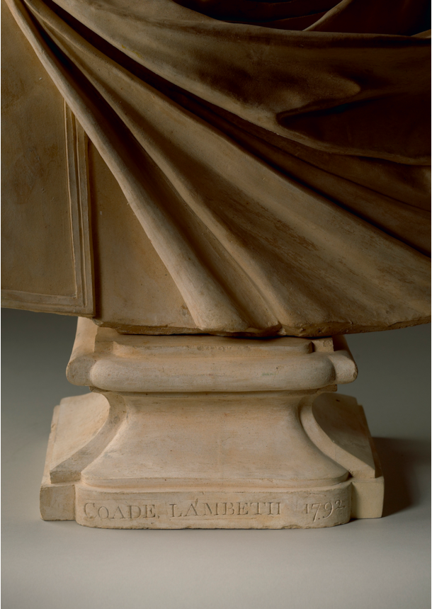 Following her acquisition of Daniel Pincot’s financially troubled manufactory, Coade terminated his employment in 1771 and appointed the Neoclassical sculptor John Bacon as supervisor. In notices published in the Daily Advertiser on 23 and 25 September 1792, Coade formally announced the change in management: