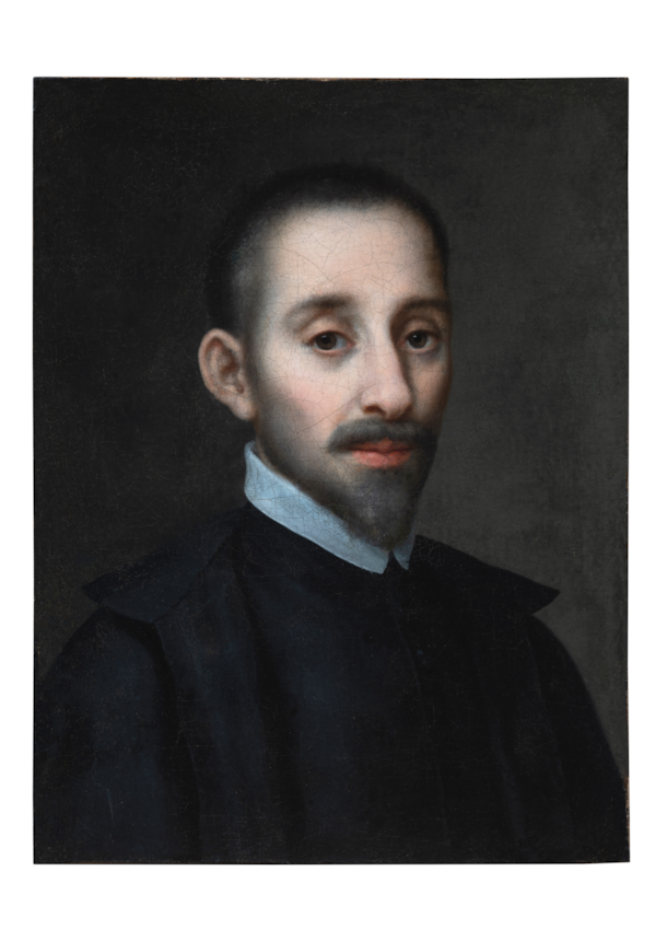Dressed in his traditional clerical attire, he wears a stiff white collar and a black cape draped over his shoulders. His high forehead, emphasised by a subtle play of light, is masterfully captured by Agnese Dolci. The daughter of Carlo Dolci, Agnese was deeply influenced by her father, from whom she inherited both technique and artistic sensibility. While Carlo Dolci has traditionally been regarded as the master of pictorial virtuosity in seventeenth-century Florence — renowned for an impeccable draftsmanship and technique that align seamlessly with the religious and pietistic subjects he most often pursued — Agnese, by contrast, infueses her works with a more sentimental tone, conveying what might be described as a “feminine” sensitivity.In the present portrait, for instance, the artist embraces a naturalistic approach, by depicting even the imperfection of a slightly protruding ear. Yet, her refined skill shines in the rendering of soft, lifelike flesh tones, reminiscent of her father’s ethereal figures.